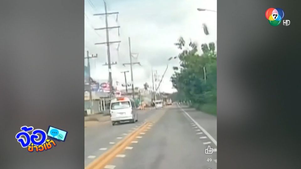 จ้อข่าวเช้า - เฉียดตาย ! รถกระบะซิ่งชนเสาไฟฟ้าล้ม 12 ต้น