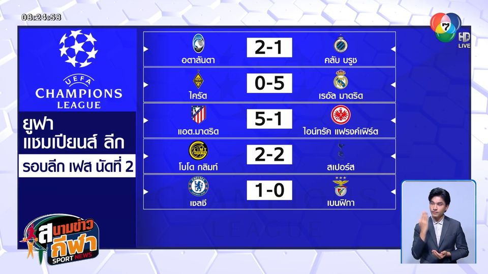 สนามข่าว 7 สี - ผลฟุตบอล ยูฟา แชมเปียนส์ ลีก เมื่อคืนที่ผ่านมา รอบลีก เฟส นัดที่ 2