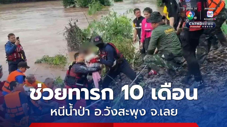 กู้ภัยช่วยเหลือเด็กทารก 10 เดือน หนีน้ำป่าออกมาได้อย่างปลอดภัย หลังจากในพื้นที่ อ.วังสะพุง จ.เลย เกิดฝนตกหนักติดต่อกันต่อเนื่อง ตลอดทั้งคืนที่ผ่านมา