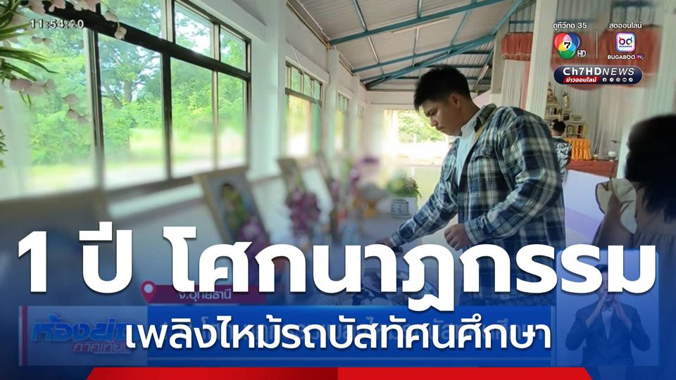 ห้องข่าวภาคเที่ยง - 1 ปี โศกนาฏกรรม เพลิงไหม้รถบัสทัศนศึกษา วันนี้ที่มีพิธีทำบุญให้ครู และนักเรียน 23 คน ที่เสียชีวิต ที่โรงเรียนวัดเขาพระยาสังฆาราม จังหวัดอุทัยธานี