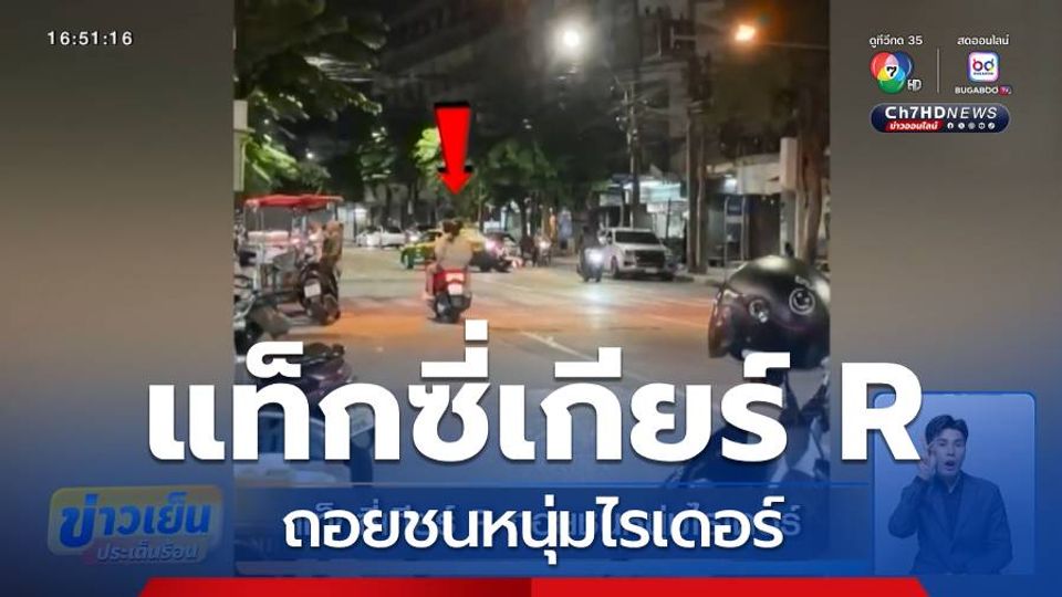 ข่าวเย็นประเด็นร้อน - อุทาหรณ์บนท้องถนน ต่างคน ต่างหัวร้อน ! คนขับแท็กซี่ใส่เกียร์ R ถอยชนหนุ่มไรเดอร์ หัวฟาดแม็กล้อรถ เย็บ 6 เข็บ