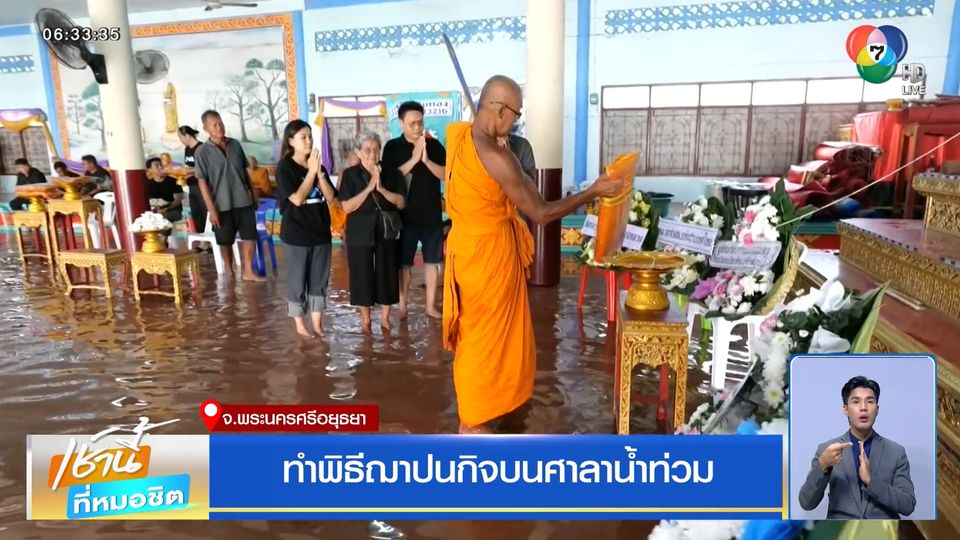 เช้านี้ที่หมอชิต - จังหวัดพระนครศรีอยุธยา งานสวดศพคืนที่ 3 จู่ ๆ น้ำทะลักเข้าท่วมศาลาตั้งศพ ทางวัดต้องประกอบพิธีท่ามกลางน้ำท่วม