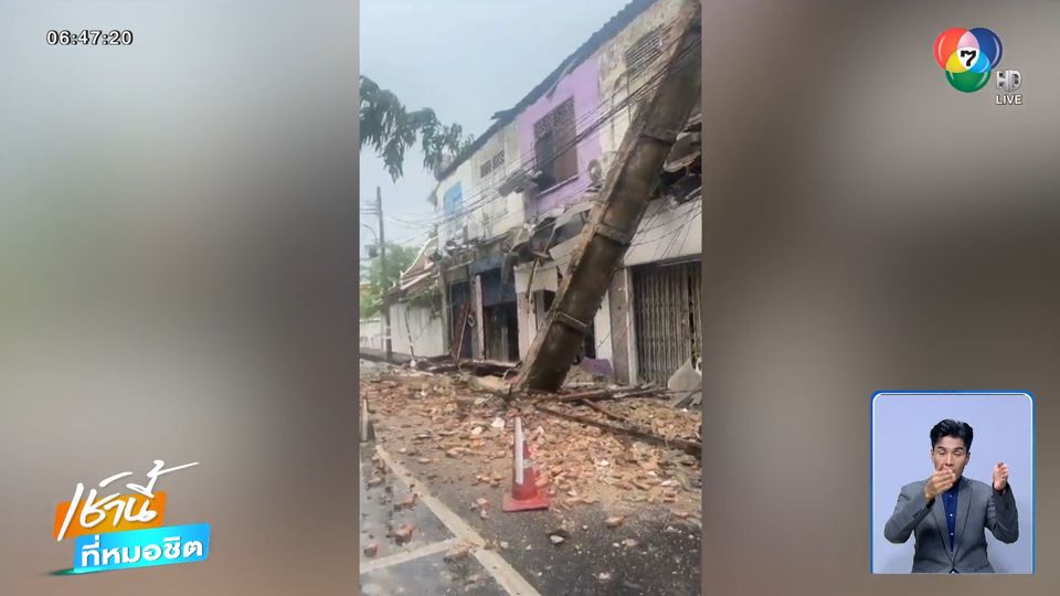 ระทึก กันสาดอาคารเก่าอายุกว่า 100 ปี ทรุดตัว
