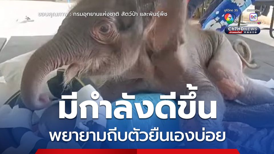 ความคืบหน้าด้านสุขภาพและการรักษา ทีมสัตวแพทย์เปิดเผยรายละเอียดการติดตามอาการประจำวัน ดังนี้ อาการทั่วไป การกินและการขับถ่าย ลูกช้างกินนมและน้ำได้ดี การขับถ่ายปกติ อุจจาระมีลักษณะกึ่งเหลวคล้ายครีม (สีเขียวขี้ม้าอ่อน) และปัสสาวะสีใส ส่วนบาดแผลบริเวณสะดือพบหนองลดลง และไม่พบหนองในเล็บแล้ว แต่ยังคงต้องมีการล้างทำความสะอาดแผลอย่างต่อเนื่อง
