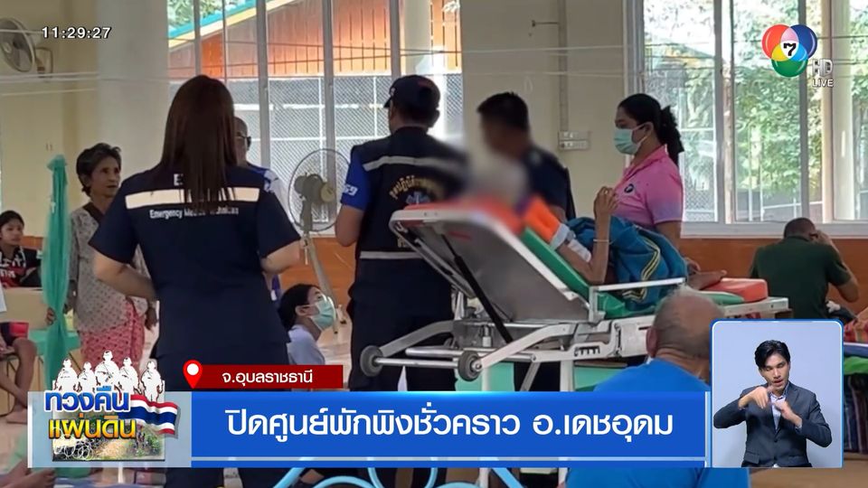 ห้องข่าวภาคเที่ยง - ชาวบ้าน อำเภอน้ำยืน ที่อพยพไปอยู่ศูนย์พักพิงชั่วคราว อำเภอเดชอุดม จังหวัดอุบลราชธานี ทยอยเดินทางกลับบ้านกันแล้ว วันนี้เป็นกลุ่มสุดท้าย ส่วนใหญ่เป็นผู้ป่วย และผู้ป่วยติดเตียง ก่อนจะปิดศูนย์ฯ