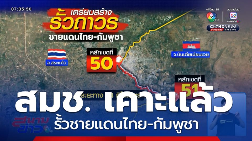 สนามข่าว 7 สี - ที่ประชุม สมช. เคาะแล้ว อนุมัติหลักการสร้างรั้วชายแดนไทย-กัมพูชา เริ่มในพื้นที่ที่ไม่มีปัญหา น่าจะเป็นจุดที่ “เสธเบิร์ด” เคยลงไปสำรวจ เมื่อเดือนสิงหาคมที่ผ่านมา