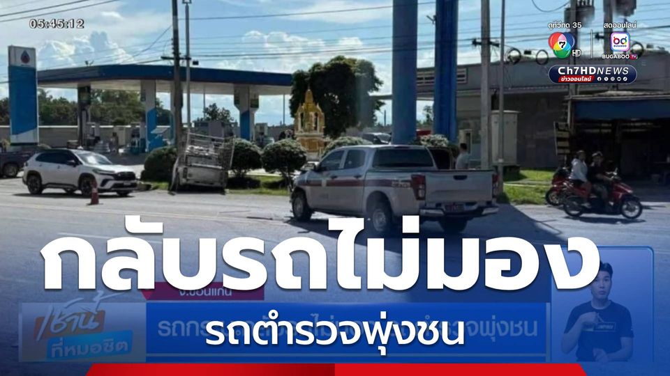 รถกระบะกลับรถไม่มอง รถตำรวจพุ่งชน จ.ขอนแก่น