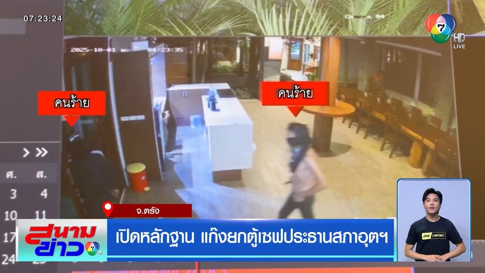 สนามข่าว 7 สี - คนร้าย 2 คน บุกบ้านประธานสภาอุตสาหกรรมภาคใต้ ยกตู้เซฟโจรกรรมทรัพย์สินมูลค่ากว่า 10 ล้านบาท ล่าสุด ตำรวจตามจับได้แล้ว 1 คน