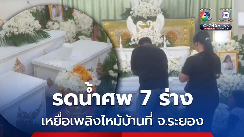 บรรยากาศสุดอาลัย รดน้ำศพเหยื่อเพลิงไหม้บ้านที่ จ.ระยอง 7 ศพ ญาติ-ชาวบ้านร่วมแน่นศาลา ทศบาลนครระยองได้มอบเงินช่วยเหลือเบื้องต้นศพละ 29,700 บาท