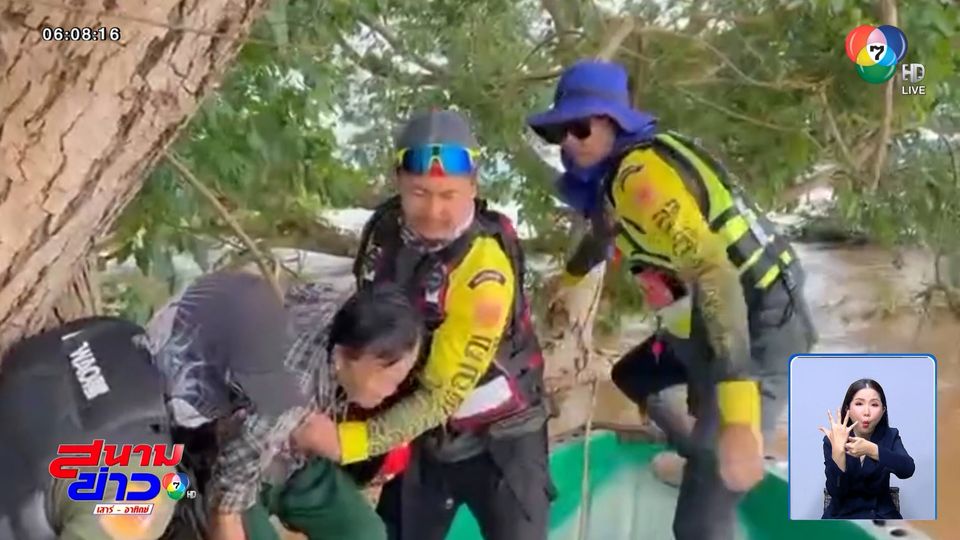 สนามข่าวเสาร์-อาทิตย์ - นาทีชีวิต ! หญิงชรา อายุ 72 ปี ออกไปหาปลา แต่เรือล่ม ถูกน้ำป่าพัดติดอยู่ที่ต้นไม้ เจ้าหน้าที่เร่งช่วยเหลือ