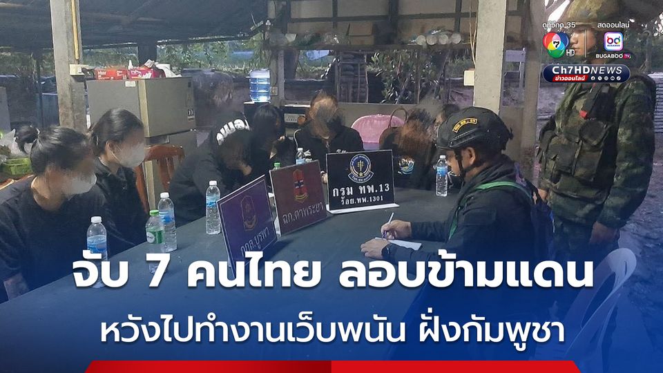 กองกำลังบูรพา สกัดจับชาวไทย 7 คน ไม่มีหนังสือเดินทาง พยายามลักลอบข้ามแดนตามช่องทางธรรมชาติ หวังไปทำงานเว็บพนันออนไลน์ฝั่งกัมพูชา