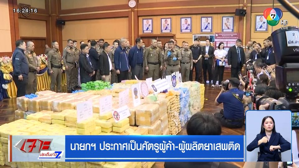 เจาะประเด็นข่าว 7HD - เรื่องของยาเสพติด วันนี้นายกฯ อนุทิน นำแถลงจับกุมตัวการสำคัญกว่า 16 ราย พร้อมประกาศตัวเป็นศัตรูกับผู้ค้า และผู้ผลิต ยืนยันรัฐบาลเข้ม ปราบยาเสพติด ขั้นเด็ดขาด
