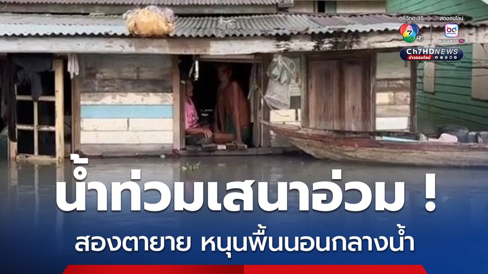 เสนาอ่วม ! สองตายายกลั้นน้ำตาไม่อยู่ น้ำท่วมสูงถึงหน้าต่าง ต้องหนุนพื้นนอนกลางน้ำ "ไม่ได้นอนเลยสักคืน…กลัวน้ำจะขึ้นถึงหัว”