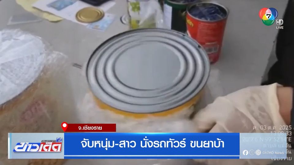 ข่าวเด็ด 7 สี - เจ้าหน้าที่สุ่มตรวจสัมภาระผู้โดยสารรถทัวร์สายแม่สาย-ภูเก็ต พบหนุ่ม-สาว ชาวสุราษฎร์ธานี มีพิรุธ ค้นกระเป๋าก็พบอาหารกระป๋อง ซุกซ่อนยาบ้านับแสนเม็ด