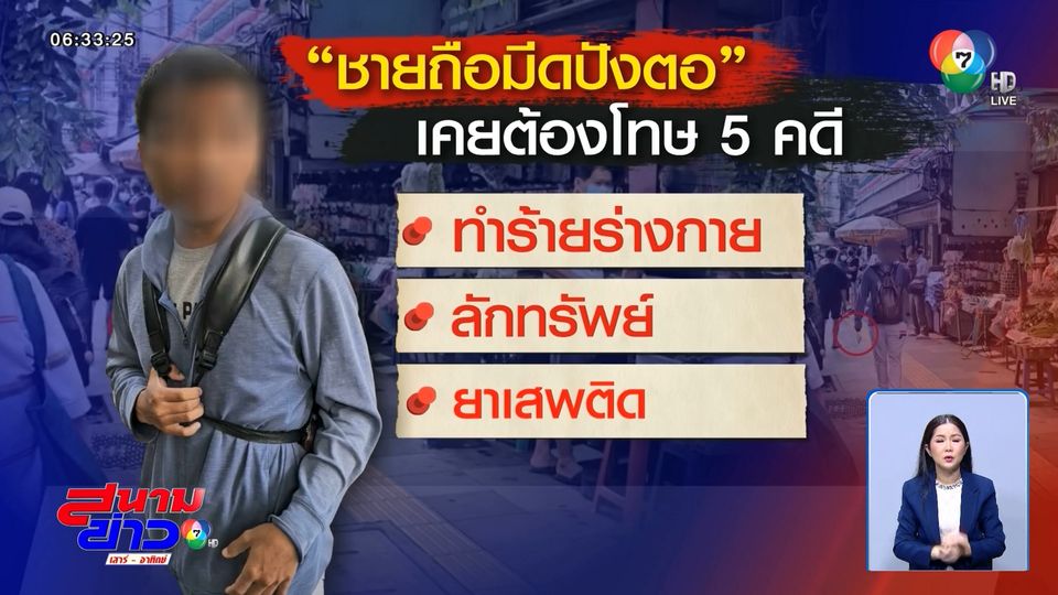 สนามข่าวเสาร์-อาทิตย์ - ตำรวจตามจนเจอตัวแล้ว ชายที่ไปขโมยมีดปังตอมาเป็นอาวุธ ท้าตีท้าต่อยกับวินรถจักรยานยนต์รับจ้าง บริเวณปากซอยลาดพร้าว 96