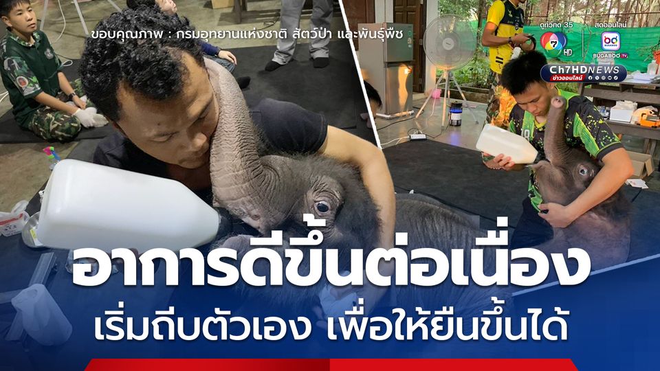 ทีมสัตวแพทย์เน้นย้ำการบำบัดฟื้นฟูอย่างเข้มข้น โดยมีการนวดกระตุ้นกล้ามเนื้อและยืดเหยียดขาอย่างต่อเนื่อง พร้อมทั้งให้สารน้ำทางหลอดเลือดดำ และให้โปรไบโอติกเพื่อปรับสมดุลในระบบทางเดินอาหาร เพื่อเร่งให้ลูกช้างสามารถช่วยเหลือตัวเองได้มากขึ้น