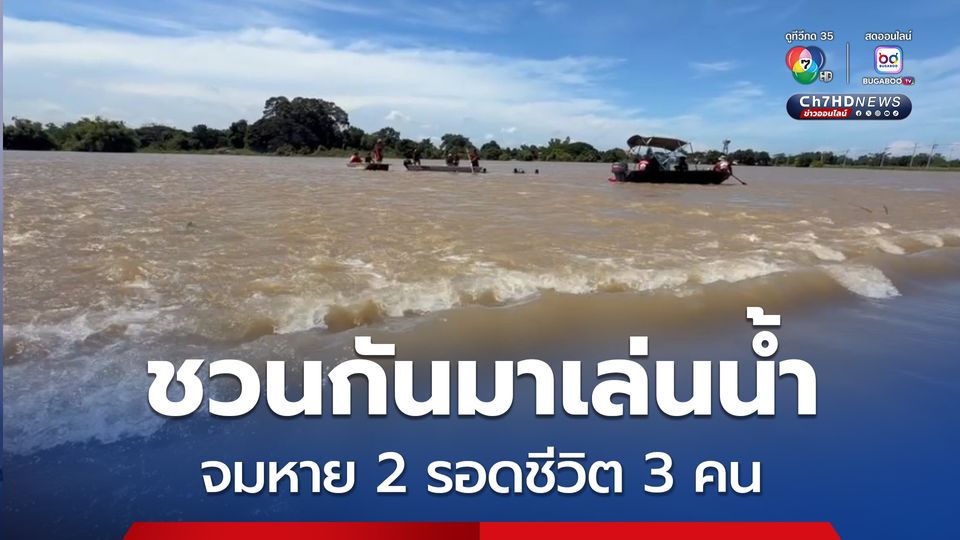 สลด ! เยาวชนชาย 5 คน พากันมาเล่นน้ำท่วม หนึ่งในกลุ่มลื่นพลัดตกน้ำ ที่เหลือต่างลงไปช่วย แต่ไม่ไหว พลเมืองดีขับเรือผ่าน ช่วยไว้ได้ รอดชีวิต 3 คน