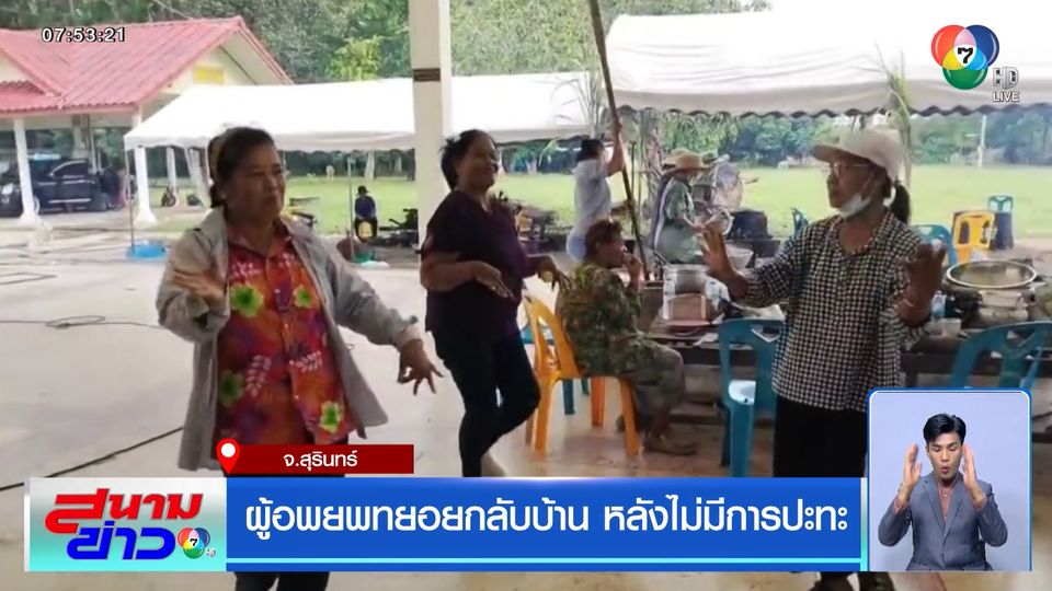 สนามข่าว 7 สี - ผู้อพยพจากภัยสงครามในพื้นที่จังหวัดสุรินทร์ ทยอยกลับบ้าน หลังสัปดาห์ที่ผ่านมาสถานการณ์ยังปกติ ขณะที่ในส่วนผู้อพยพที่เหลือก็ได้กวนข้าวทิพย์รับออกพรรษา ก่อนจะรอดูสถานการณ์อีกครั้ง