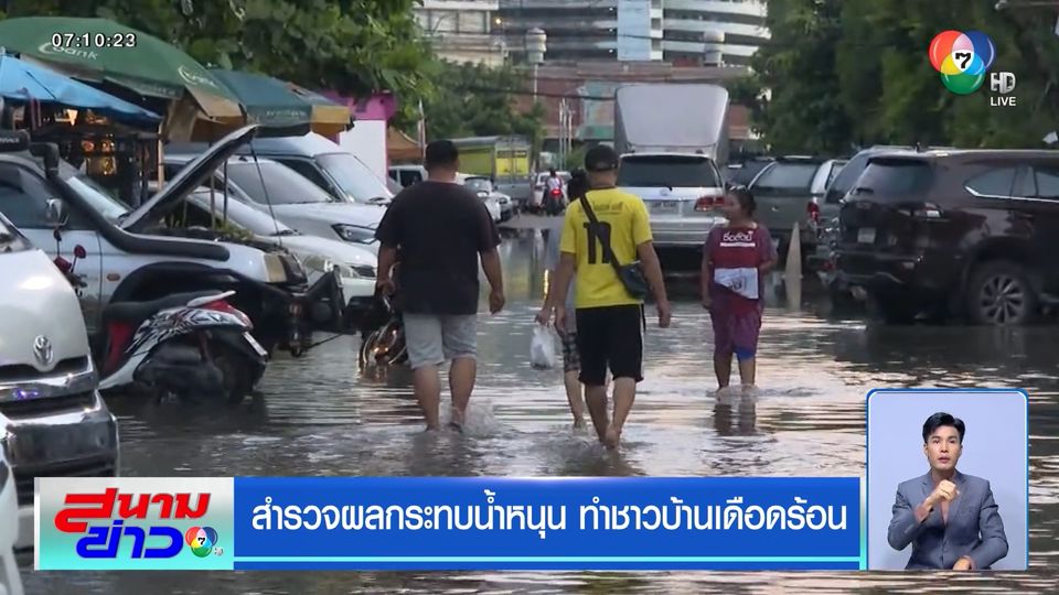 ทีมข่าว 7HD ลงพื้นที่สำรวจชุมชน ซอยพิบูลสงคราม 1 วัดปากน้ำ จังหวัดนนทบุรี พบมีการนำกระสอบทรายมากั้นปากประตูวัด ส่วนบริเวณกลางซอยจนถึงท้ายซอย บริเวณท่าเรือพิบูลสงคราม 1 พบน้ำล้นตามท่อเข้าท่วมผิวจราจร