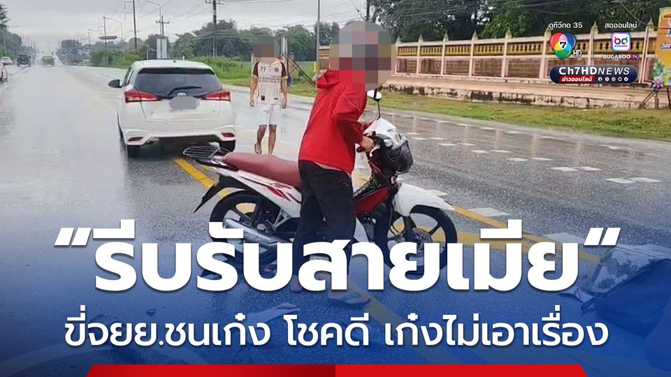 กำลังขี่ จยย.กลับบ้าน เมียโทรมาจะรีบรับสาย เพื่อบอกเมียว่า "กำลังกลับ" ขณะหยิบโทรศัพท์ไม่ทันระวังขี่ชนท้ายรถเก๋งเสียหาย แต่โชคดี รถเก๋งไม่เอาเรื่อง คนขับรถเก๋ง เผย ไม่เอาเรื่อง เพราะหลังเกิดเหตุคนขี่รถจักรยานยนต์ รีบยกมือไหว้ ขอโทษกับสิ่งที่เกิดขึ้น
