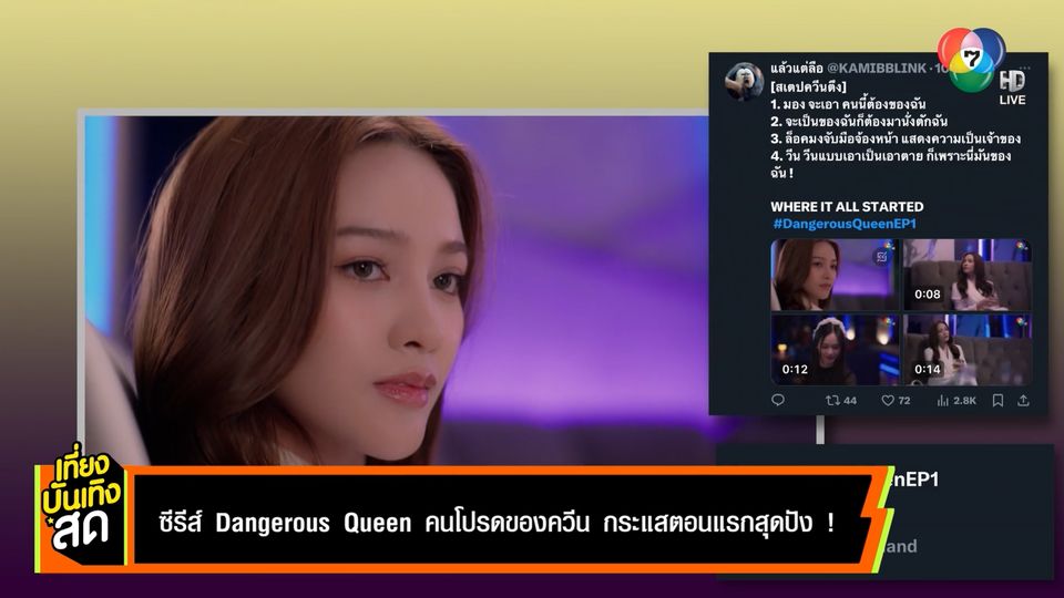 เที่ยงบันเทิงสด - กระแสความปังของซีรีส์ Dangerous Queen คนโปรดของควีน เมื่อวานออนแอร์เป็นตอนแรก กระแสดีมาก พา #DangerousqueenEP1 ติดเทรนด์ X ไปเลย