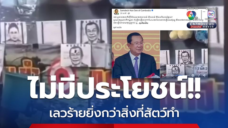 6 ต.ค. 68 สมเด็จฯ ฮุน เซน ประธานวุฒิสภากัมพูชา โพสต์เฟซบุ๊กถึงกรณีที่ร้านค้าในงานวัดแห่งหนึ่ง ได้นำรูปภาพใบหน้าของ สมเด็จฯ ฮุน เซน มาเป็นเป้าสำหรับยิงปืนเพื่อแลกของรางวัล