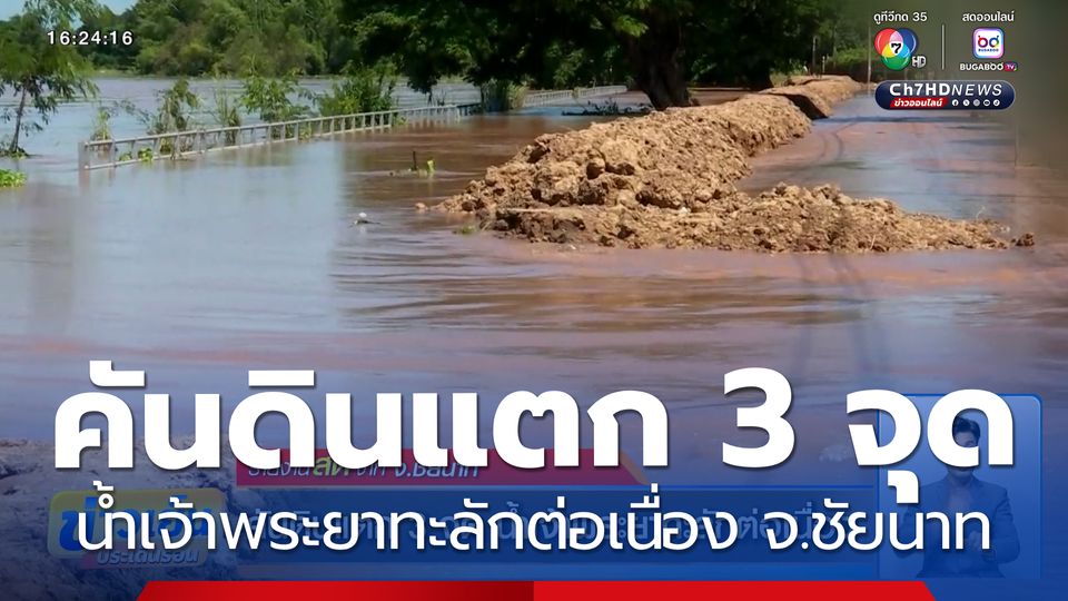 คันดินแตก 3 จุด น้ำเจ้าพระยาทะลักต่อเนื่อง จ.ชัยนาท