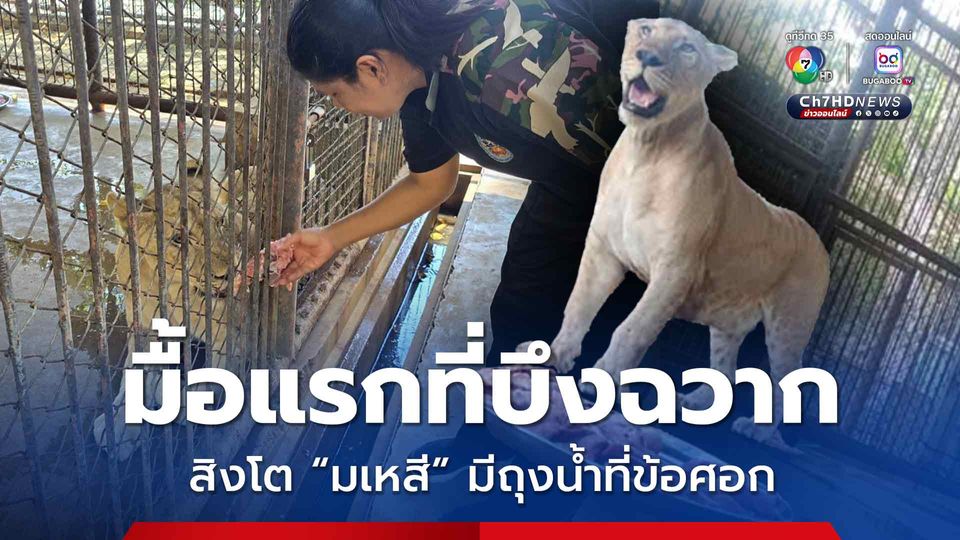 หลังรับตัวสิงโต มเหสี ไว้ดูแลตั้งแต่ช่วงเย็นวานนี้ (5 ต.ค.68) พบว่า สิงโต “มเหสี” มีอาการหอบ ทีมสัตวแพทย์จึงช่วยลดอุณหภูมิร่างกาย จนเช้าวันนี้ (6 ต.ค.68) อาการหายใจกลับสู่ปกติ ผลตรวจสุขภาพเบื้องต้น พบถุงน้ำที่ข้อศอกทั้ง 2 ข้าง (จากการกดทับกับพื้นแข็ง) มีแผลเล็กบริเวณหน้าผาก ร่างกายส่วนอื่นปกติ