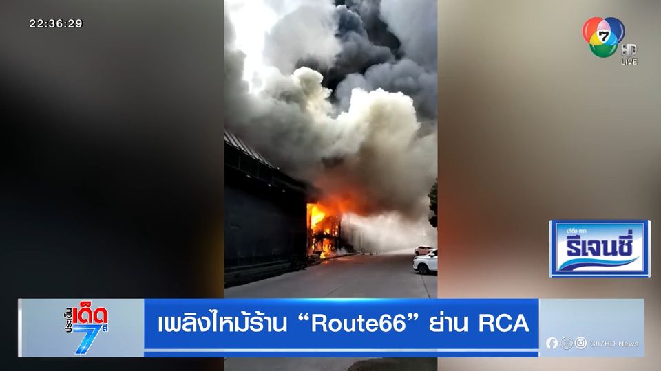 ประเด็นเด็ด 7 สี - เกิดเหตุเพลิงไหม้สถานบันเทิงชื่อดัง "Route66" ย่าน RCA ควันขโมงจนนึกว่าเพลิงไหม้ลุกลามไปทั้งแถบ ดีว่างานนี้ไหม้ก่อนเริ่มเปิดให้บริการ รถยังไม่ติดขัดเท่าไหร่ จึงควบคุมเพลิงได้ไว