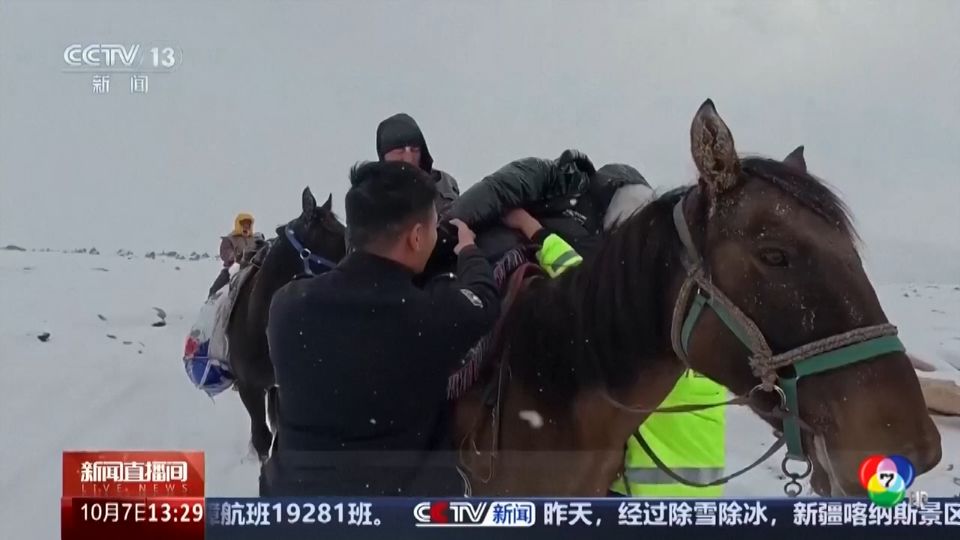 สำนักข่าว CCTV ของจีน รายงานว่า หิมะที่ตกลงมาอย่างหนักต่อเนื่องตั้งแต่วันอาทิตย์ที่ผ่านมา (5 ต.ค.) ส่งให้มีนักท่องเที่ยวจำนวนมากติดค้างอยู่ในจุดเดินป่าและจุดตั้งแคมป์พักแรมในเขตทะเลสาบคานาส (Kanas) บริเวณเทือกเขาอัลไต (Altai) เขตปกครองตนเองซินเจียงอุยกูร์ ทางตะวันตกเฉียงเหนือของจีน ขณะเดียวกัน ทางหลวงสายต่าง ๆ ก็ถูกหิมะและน้ำแข็งปกคลุมตลอดช่วงสุดสัปดาห์ที่ผ่านมา ทำให้รถนักท่องเที่ยวจำนวนมากติดอยู่บนถนน ทางการต้องเข้าช่วยเหลือผู้ใช้รถใช้ถนนและเร่งเคลียร์รถยนต์ที่ติดอยู่ออกไป