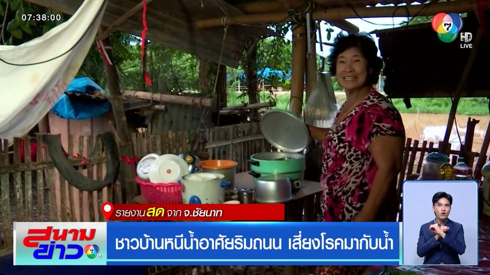 ชาวบ้านหนีน้ำอาศัยริมถนน เสี่ยงโรคมากับน้ำ จ.ชัยนาท