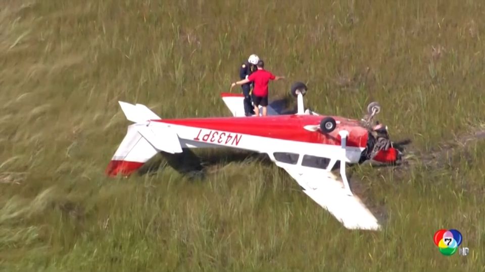เกิดเหตุเครื่องบินเล็กตกลงบนหนองน้ำเอเวอร์เกลดส์ในรัฐฟลอริดา เคราะห์ดีที่ครูฝึกและนักบินฝึกหัดรอดตายทั้งคู่