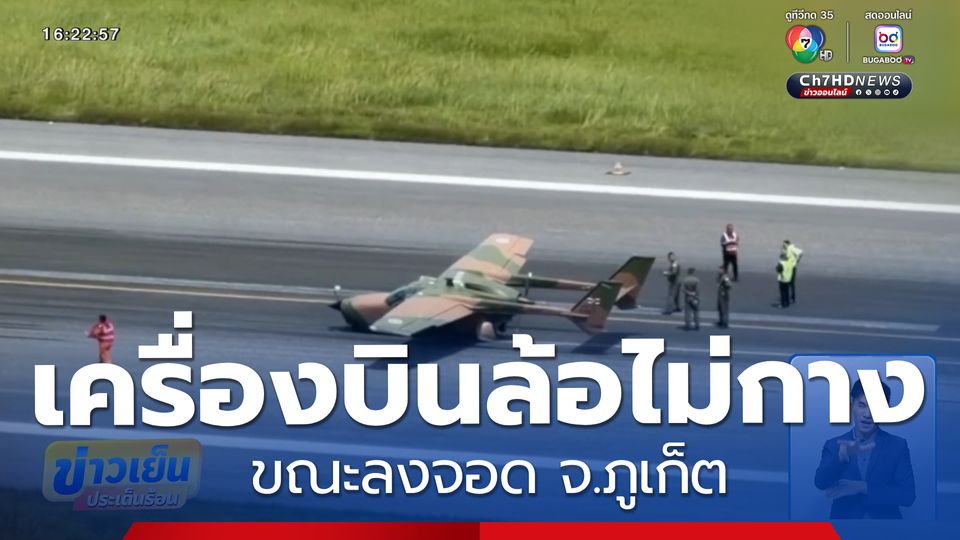 ข่าวเย็นประเด็นร้อน - เกิดเหตุระทึก เครื่องบินทหารเรือ ล้อไม่กาง ขณะจะลงจอดที่ท่าอากาศยานนานาชาติภูเก็ต ทำให้ตัวเครื่องบินครูดไถลไปตามรันเวย์ เคราะห์ยังดี ไม่เกิดเหตุร้ายแรง เจ้าหน้าที่ต้องเร่งเคลียร์พื้นที่ และจำเป็นต้องประกาศปิดรันเวย์เป็นการเร่งด่วน