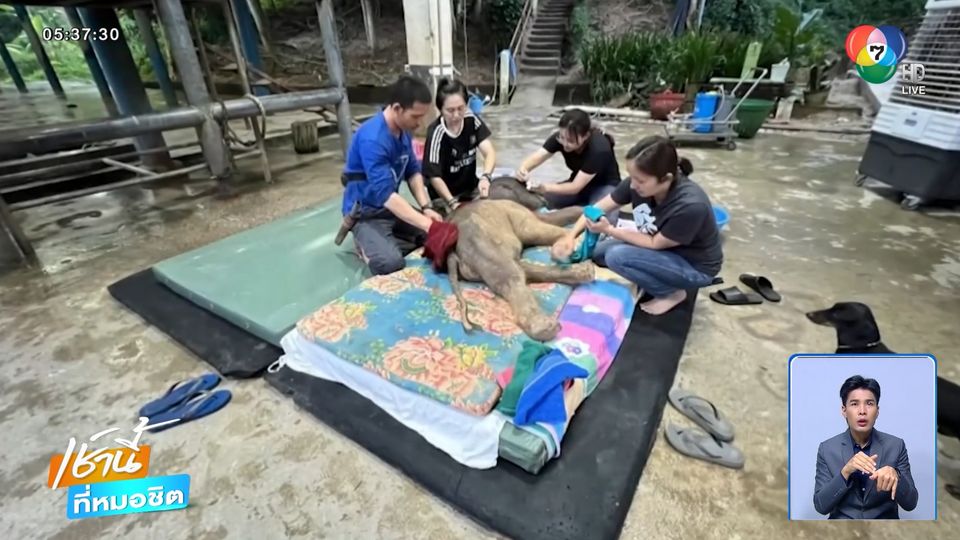 เช้านี้ที่หมอชิต - สัตวแพทย์โรงพยาบาลช้าง เร่งช่วยลูกช้างที่เพิ่งลืมตาดูโลกได้ 1 วัน ถูกแม่เตะขาหน้าท่อนบนหัก