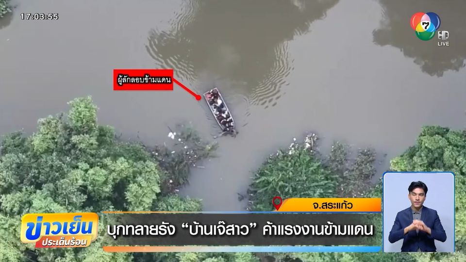 ข่าวเย็นประเด็นร้อน - เจ้าหน้าที่เปิดปฏิบัติการทลายรัง บ้านเจ๊สาว บุกจับแก๊งนำพาบุคคลใช้รถยนต์-เรือ พรางตัวลักลอบข้ามชายแดนด้านบ้านคลองลึก จังหวัดสระแก้ว