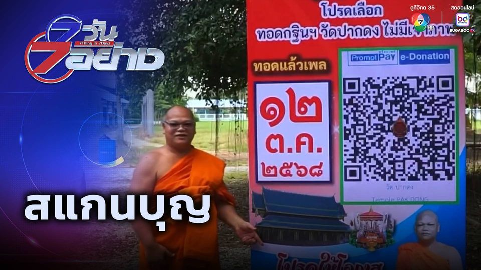 สนามข่าว 7 สี - ไปดูไอเดียสุดสร้างสรรค์ของวัดแห่งหนึ่งในจังหวัดสุพรรณบุรี ที่เปลี่ยนเรื่องทำบุญทอดกฐิน ให้กลายเป็นเหมือนศึกเลือกตั้งย่อมๆ ชนิดที่ว่าพรรคการเมืองเห็นแล้วยังต้องยกนิ้วให้ ติดตามใน "7 วัน 7 อย่าง"