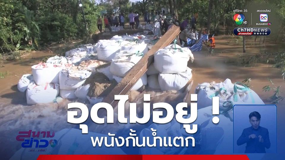 สนามข่าวเสาร์-อาทิตย์ - สถานการณ์น้ำท่วม ใน อำเภอตะพานหิน จังหวัดพิจิตร หลังแม่น้ำน่านกัดเซาะพนังกั้นน้ำแตก เจ้าหน้าที่และชาวบ้านช่วยกันอุดปิดทางน้ำ แต่ยังไม่สำเร็จ