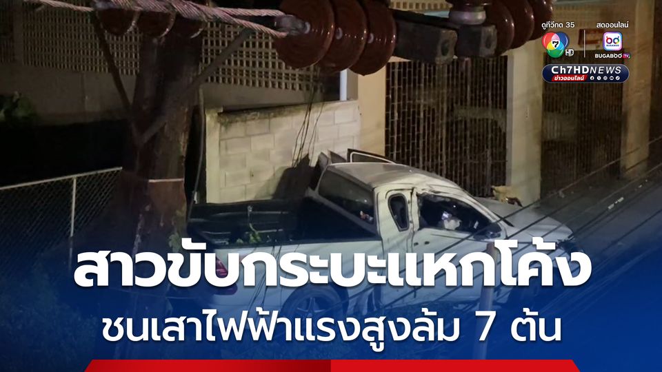 หญิง จนท.ห้องอีอาร์ รพ.แห่งหนึ่งที่ จ.ตรัง ขับรถกระบะแหกโค้ง ชนเสาไฟฟ้าแรงสูงล้ม 7 ต้น ได้รับาดเจ็บ 3 คน ขณะที่ ไฟดับเป็นวงกว้างทั่วเมืองตรัง นอกจากนั้น ยังมีรถเก๋งที่ขับตามมาเสียหายอีก 1 คัน เสาไฟล้มทับ 3 ชีวิตในรถรอดหวุดหวิด