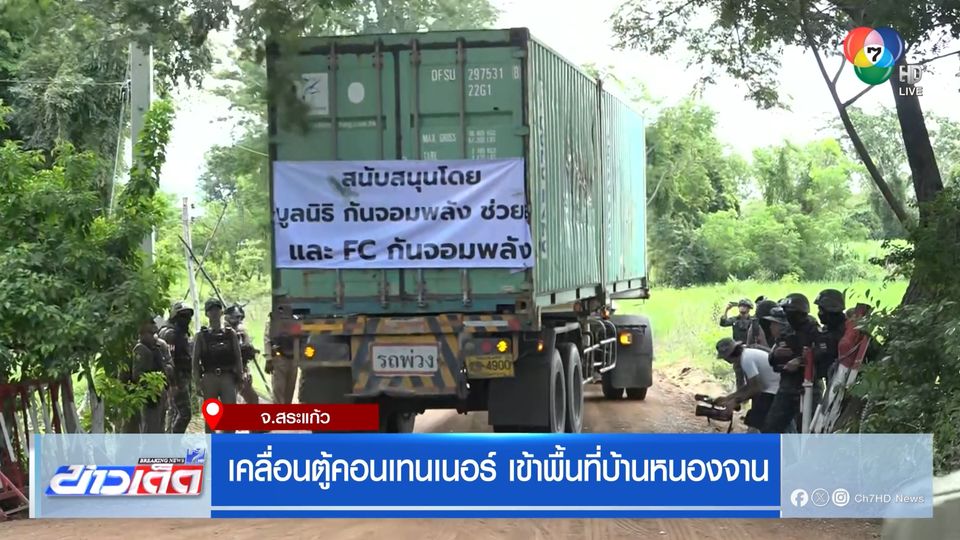 จากนั้นเวลา 12.20 เจ้าหน้าที่ได้มีเคลื่อนตู้คอนเทนเนอร์ จำนวน 4 หลัง จากมูลนิธิกัน จอมพลังช่วยสู้ เข้าพื้นที่ด้านในบ้านหนองจานแล้ว เพื่อเตรียมทำกำแพงกั้นเขตแดนไทย-กัมพูชา