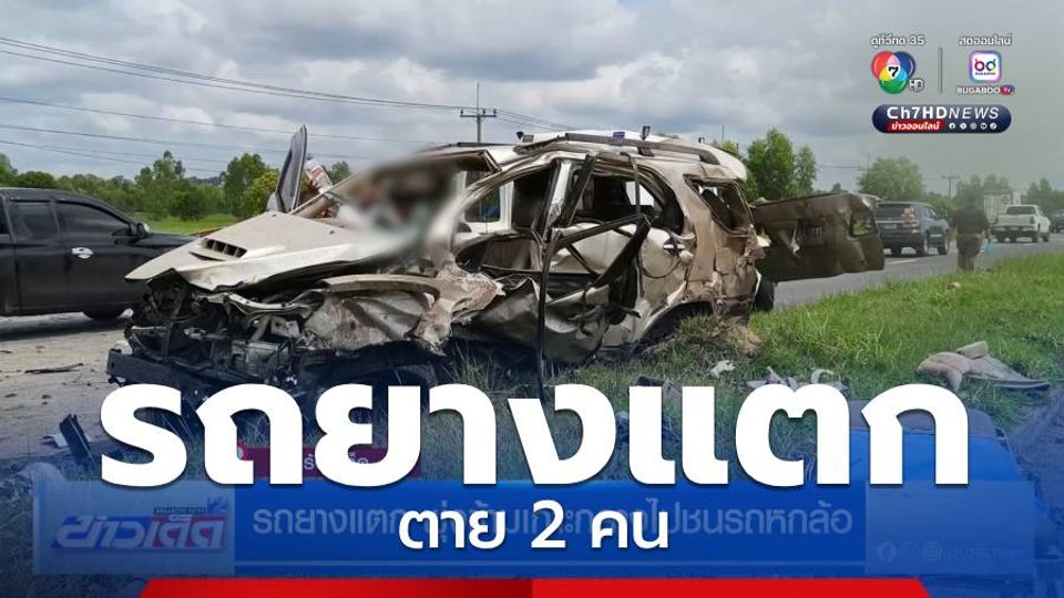 ข่าวเด็ด 7 สี - เกิดอุบัติเหตุรถยนต์ยางแตก เสียหลักเหินข้ามเกาะกลาง ไปชนกับรถบรรทุก 6 ล้อ มีผู้เสียชีวิต 2 คน และบาดเจ็บอีก 2 คน