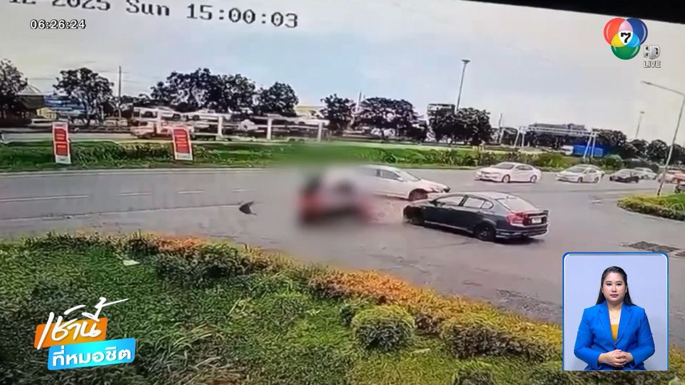 เช้านี้ที่หมอชิต - รถเก๋งจะเลี้ยวเข้าหมู่บ้าน ส่วนรถจักรยานยนต์จะไปทางตรง ชนกันเต็ม ๆ คนขี่อาการสาหัส กระเด็นตกคูน้ำ และรถจักรยานยนต์ขาด 2 ท่อน