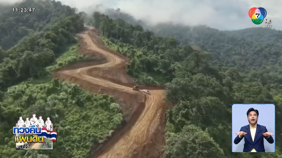 ห้องข่าวภาคเที่ยง - การสร้างถนนเลียบชายแดน ด้านจังหวัดจันทบุรี ไปถึงจุดหมายพื้นที่คลองรูปตัวยูแล้ว แต่ยังมีภารกิจต้องถมคลองขุดเจาะใหม่ ให้กลับอยู่ในสภาพเดิม แต่เพราะมีปัญหาฝนตกหนัก จึงยังไม่กำหนดวันนำธงชาติไทยไปปักไว้
