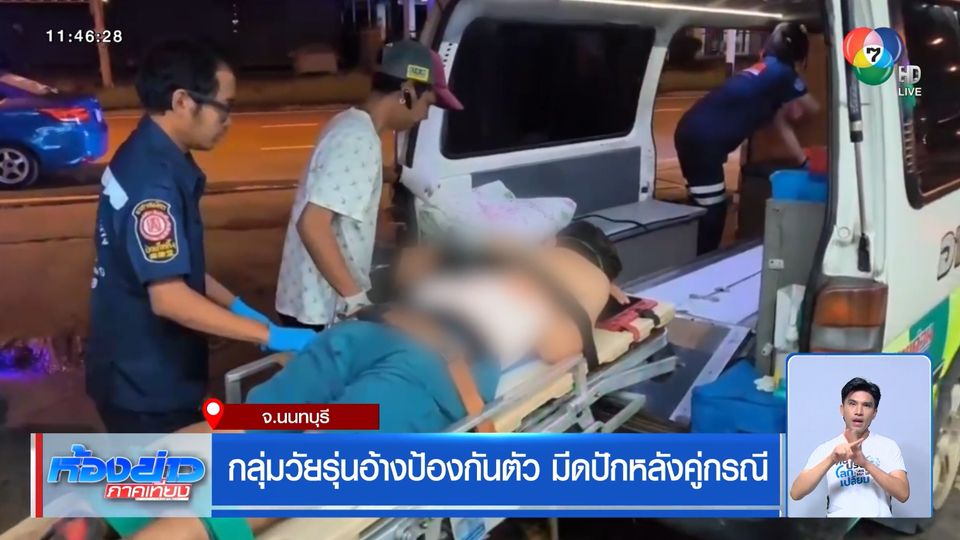 ห้องข่าวภาคเที่ยง - วัยรุ่น 3 คน ขี่รถจักรยานยนต์ออกไปรับแฟน ระหว่างทางเจอคู่กรณีขี่รถจักยานยนต์ย้อนศร กลุ่มวัยรุ่นจึงตะโกนด่า สุดท้ายจบด้วยการไล่ฟันกัน คู่กรณีบาดเจ็บถึงขั้นมีดปักหลัง