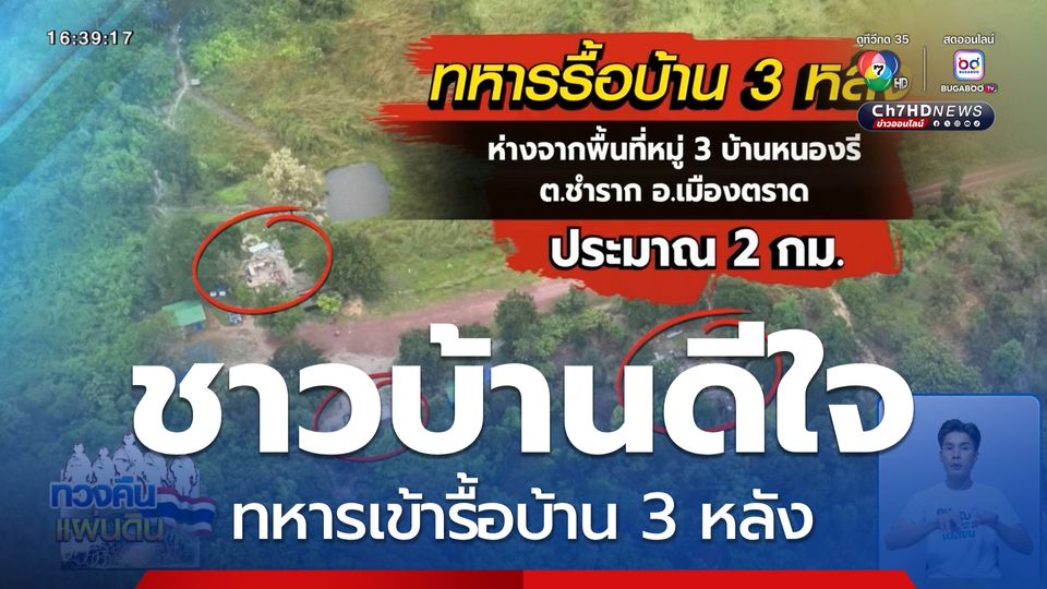 ข่าวเย็นประเด็นร้อน - ชาวบ้านชายแดนด้านจังหวัดตราด ดีใจทหารเข้ารื้อบ้าน 3 หลัง แต่ก็รู้สึกตกใจ เมื่อได้ยินเสียงระเบิดดังขึ้น เพราะบางคนไม่รู้ว่าเป็นการทำลายวัตถุระเบิด