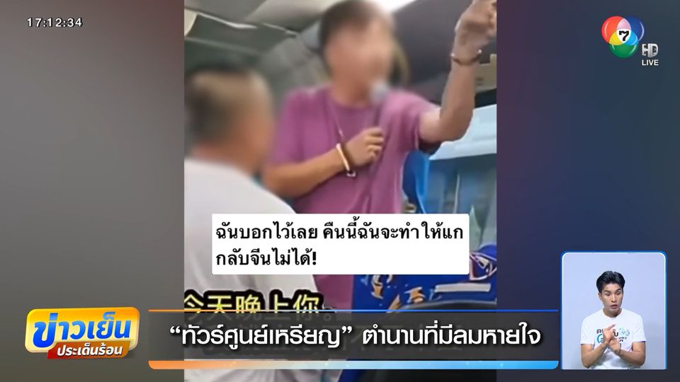 ข่าวเย็นประเด็นร้อน - โลกโซเชียลฯ วิจารณ์พฤติกรรมของผู้นำเที่ยว และลูกทัวร์ คาดว่าเป็นชาวจีน ที่ด่าทอกันอย่างแรง บอกว่า สั่งให้ลูกทัวร์ลงไปซื้อของฝาก ตามร้านที่แจ้งพิกัด ใครไม่ทำตาม ไม่ต้องกลับจีน (คลิป)