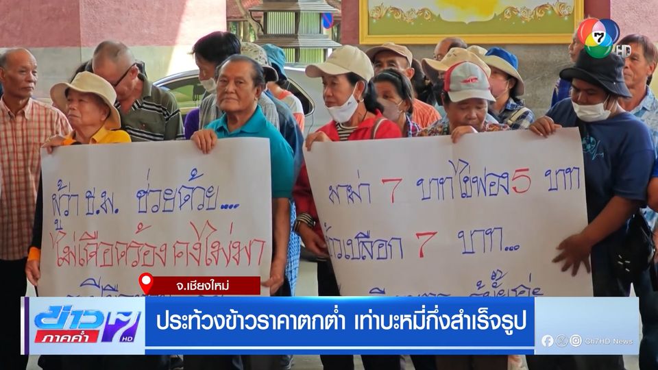 ข่าวภาคค่ำ - กลุ่มชาวนาที่จังหวัดเชียงใหม่ รวมตัวกันเรียกร้องให้แก้ปัญหาราคาข้าวตกต่ำมาก ข้องใจทำไมข้าวเปลือก 1 กิโลกรัม ราคาเท่าบะหมี่สำเร็จรูปซองเดียว