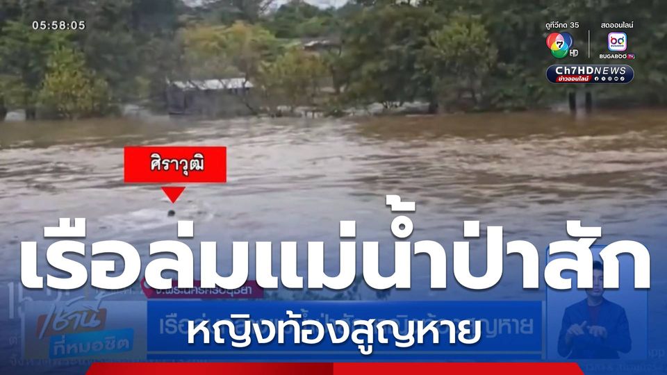 เช้านี้ที่หมอชิต - เรือยนต์ล่มกลางแม่น้ำป่าสัก คนขับเรือว่ายน้ำหนีตาย ส่วนภรรยาตั้งครรภ์ 7 เดือน สูญหาย เจ้าหน้าที่อยู่ระหว่างค้นหายังไม่พบ