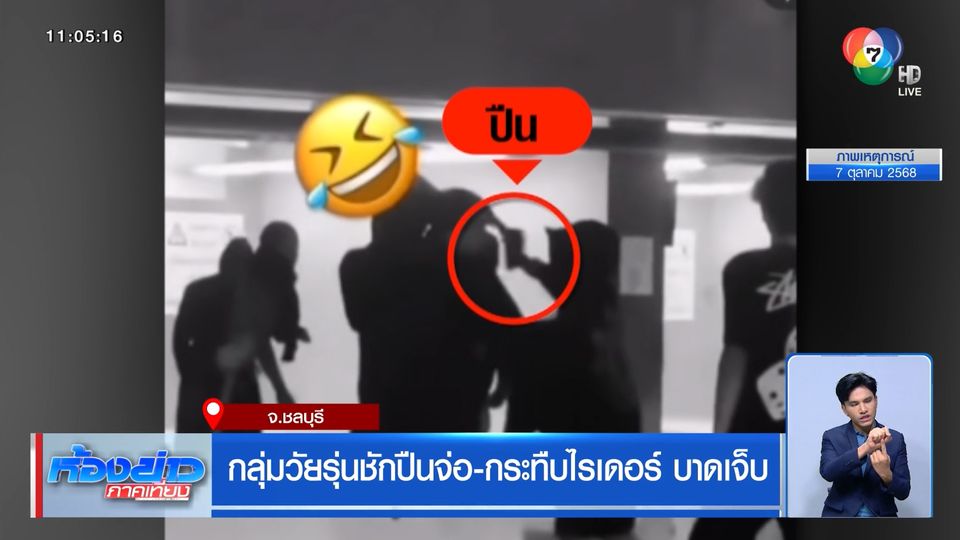 ห้องข่าวภาคเที่ยง - "หนุ่มไรเดอร์" เข้าไปห้ามกลุ่มวัยรุ่นรุมกระทืบเยาวชน กลับถูกชักปืนตบ ลั่นไกจ่อยิง โชคดีปืนยิงไม่ออก แต่ใช่ว่าจะรอด โดนรุมกระทืบซ้ำ จนบาดเจ็บ