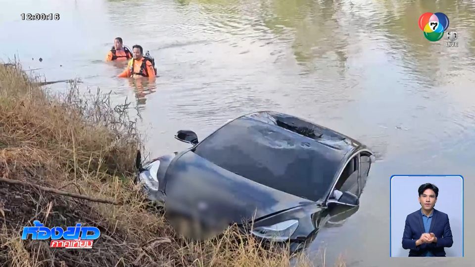 ห้องข่าวภาคเที่ยง - เกิดอุบัติเหตุรถยนต์ไฟฟ้า พุ่งตกคลองที่จังหวัดปทุมธานี พลเมืองดี ระบุได้ยินเสียงคนขับ พยายามเคาะขอความช่วยเหลือ ก่อนรถจมน้ำมิดคัน