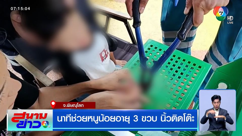 สนามข่าว 7 สี - บ้านไหนมีลูกเล็กต้องดูแลอย่างใกล้ชิด ไม่อย่างนั้นจะเหมือนเหตุการณ์นี้ หนูน้อยอายุ 3 ขวบ นั่งเล่นไปเล่นมา นิ้วติดรูโต๊ะเอาออกไม่ได้